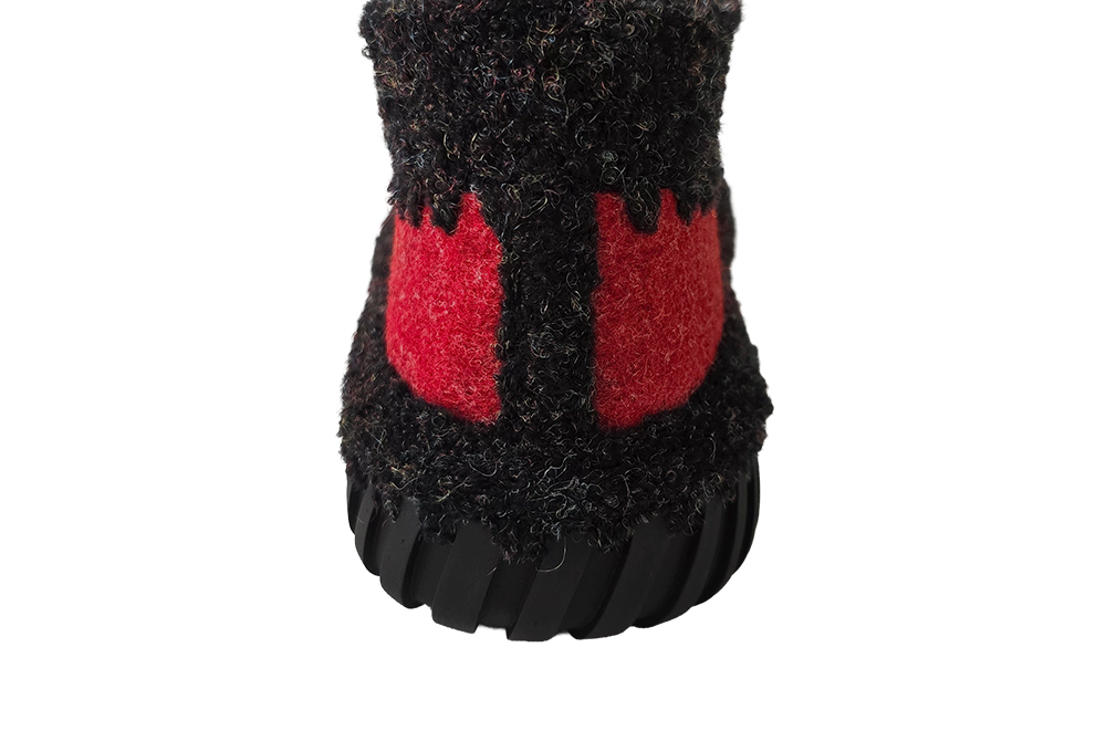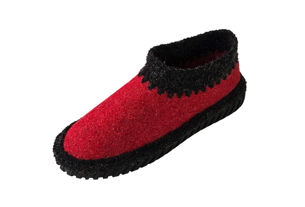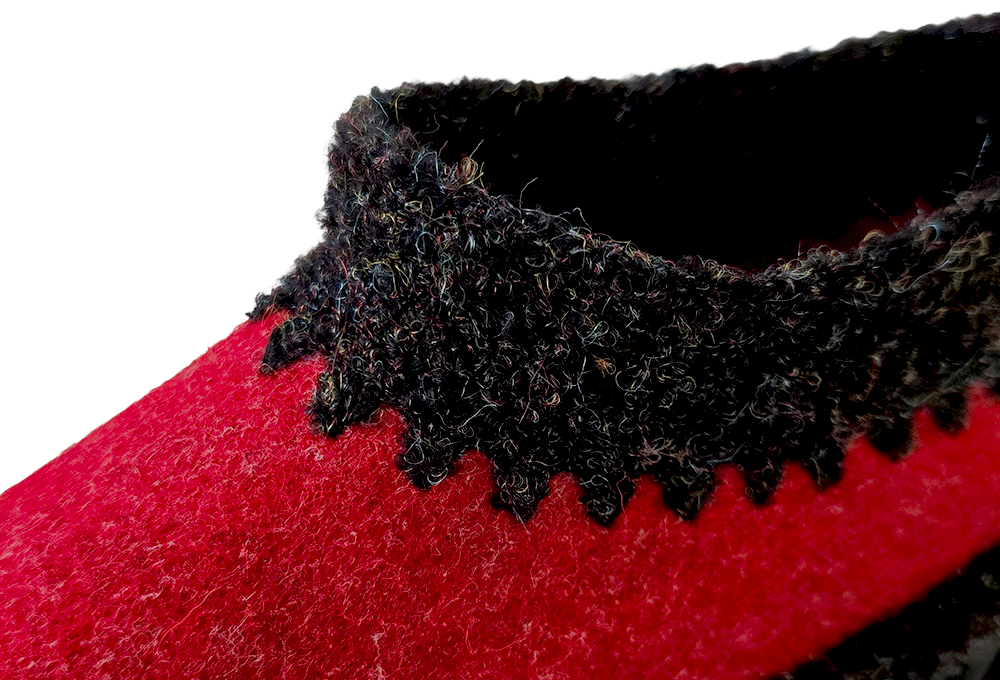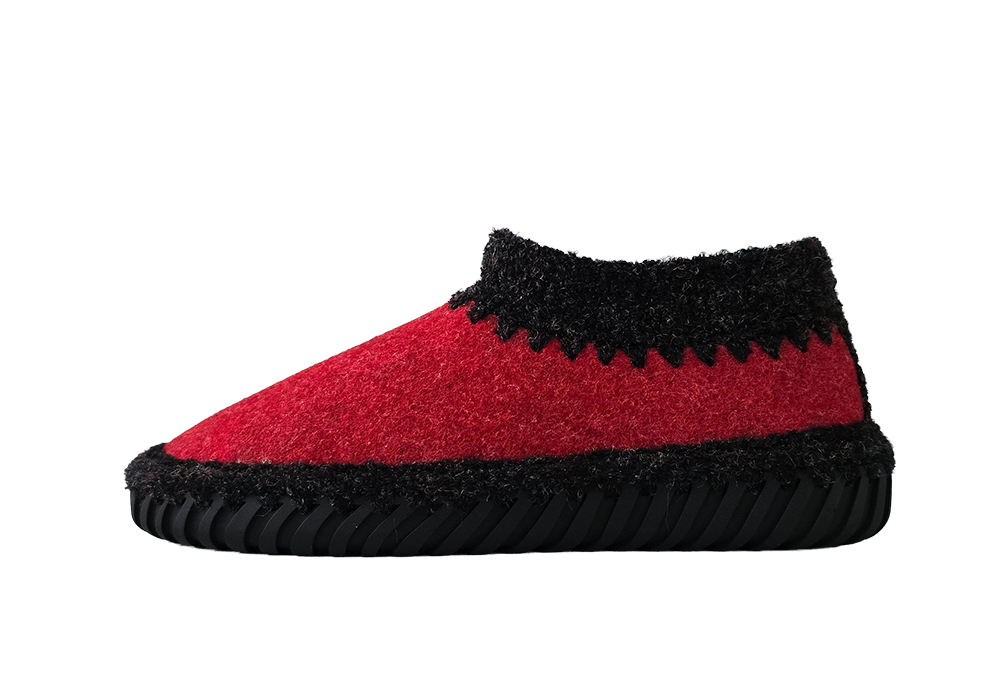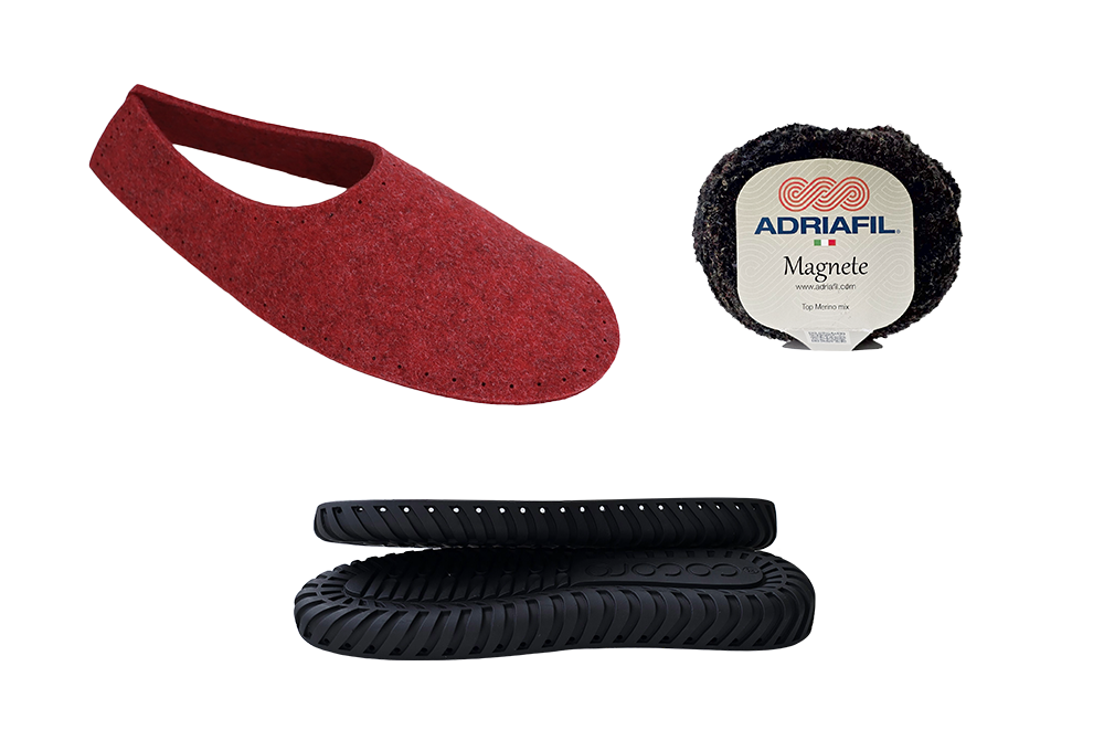 フェルトアッパーと編み付けアウトソールを使用しました。