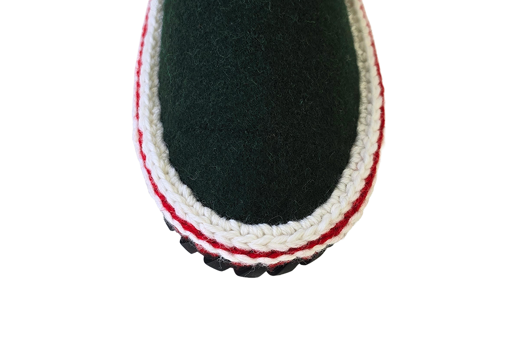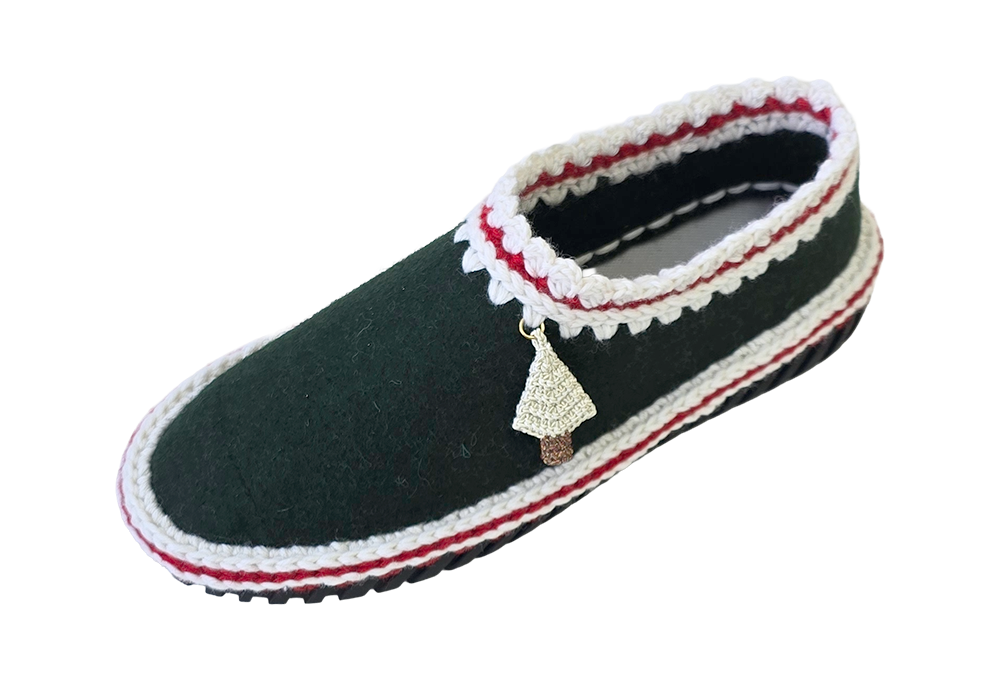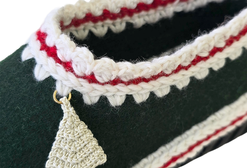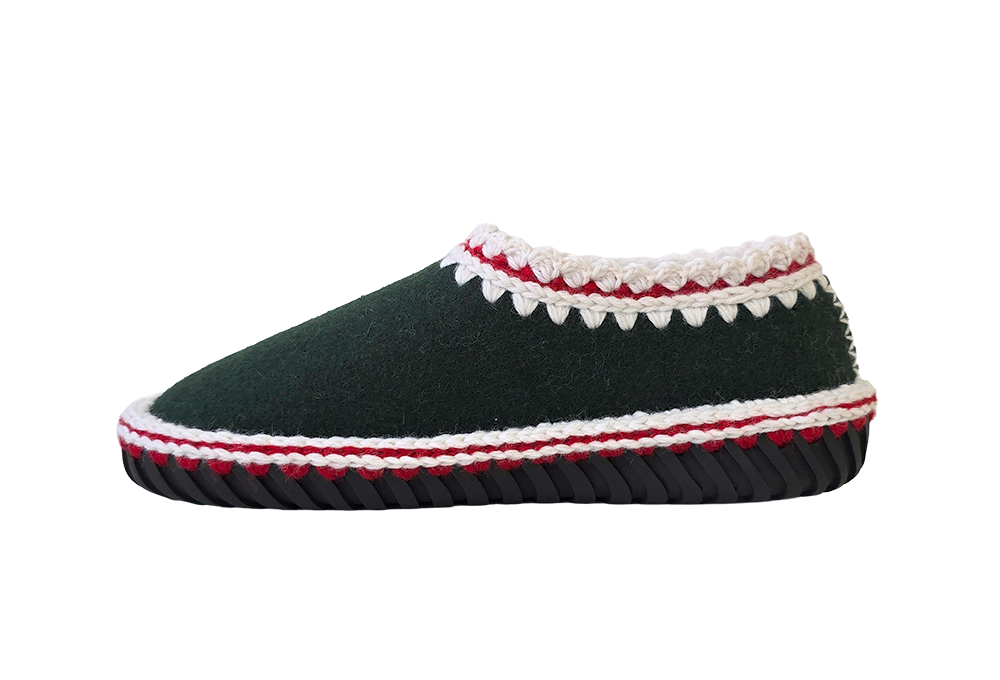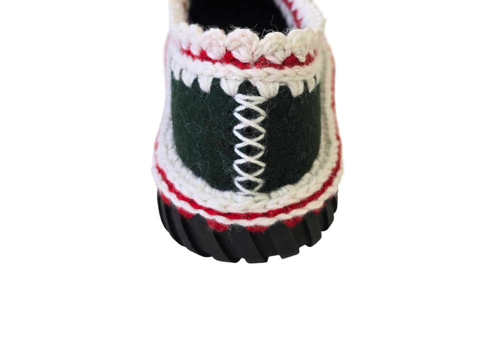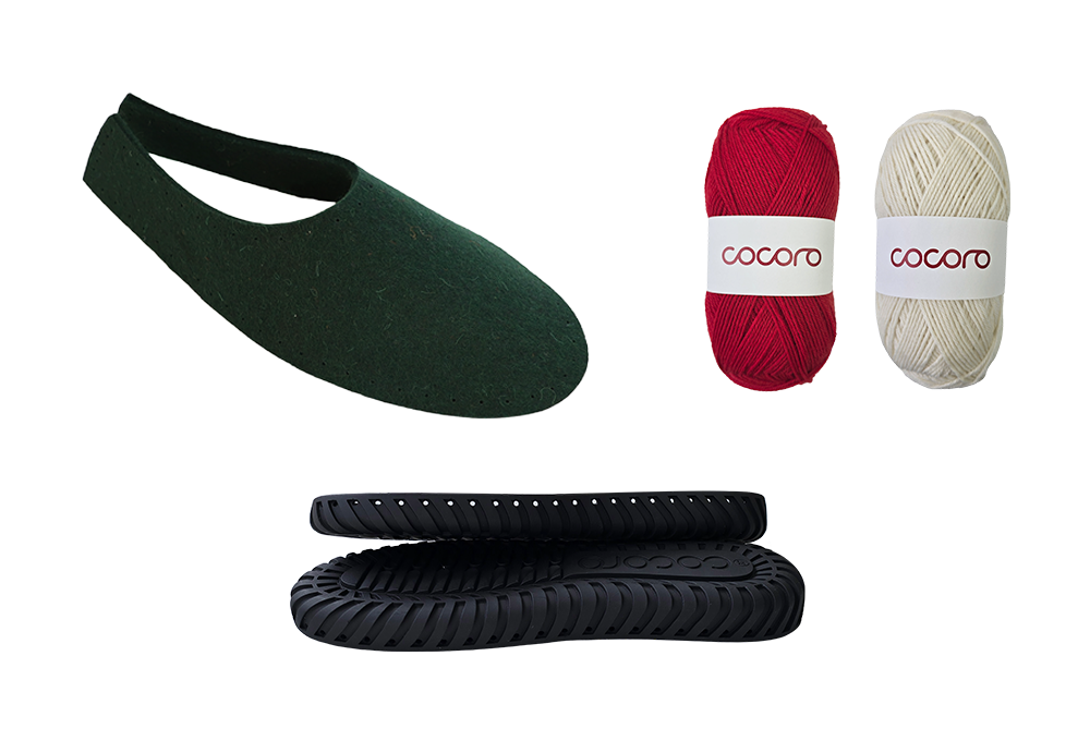 フェルトアッパーと編み付けアウトソールを使用しました。