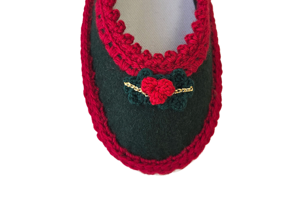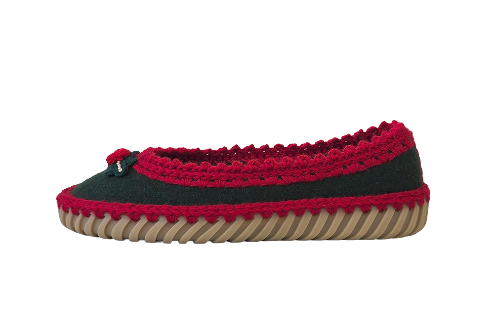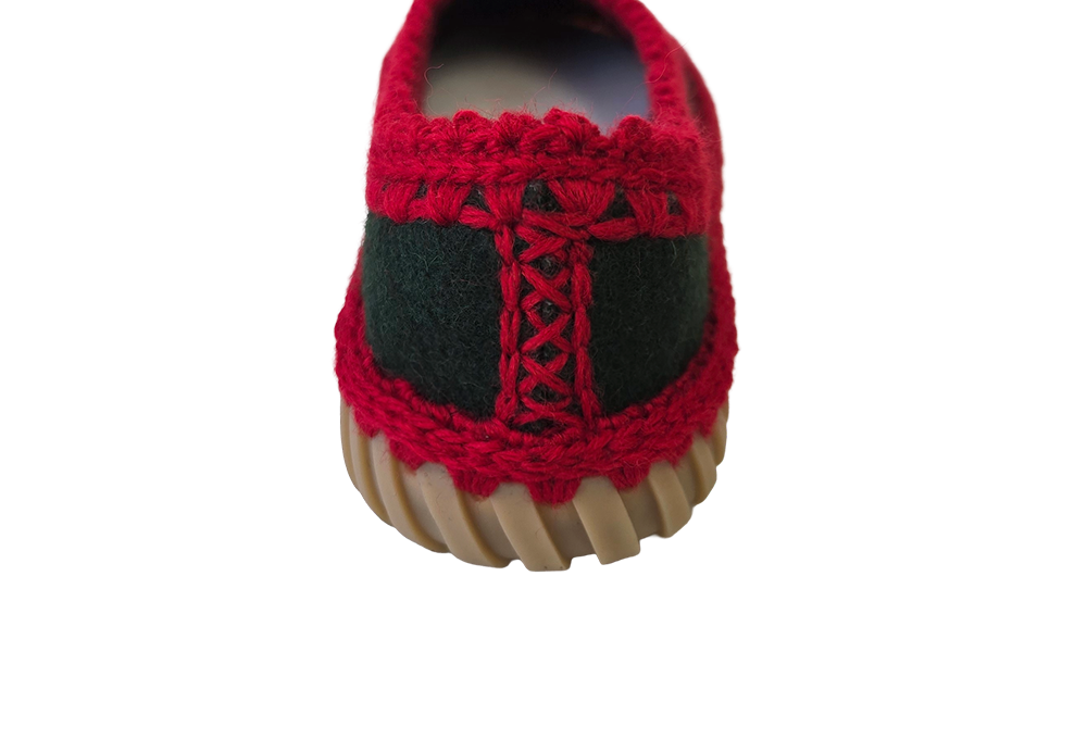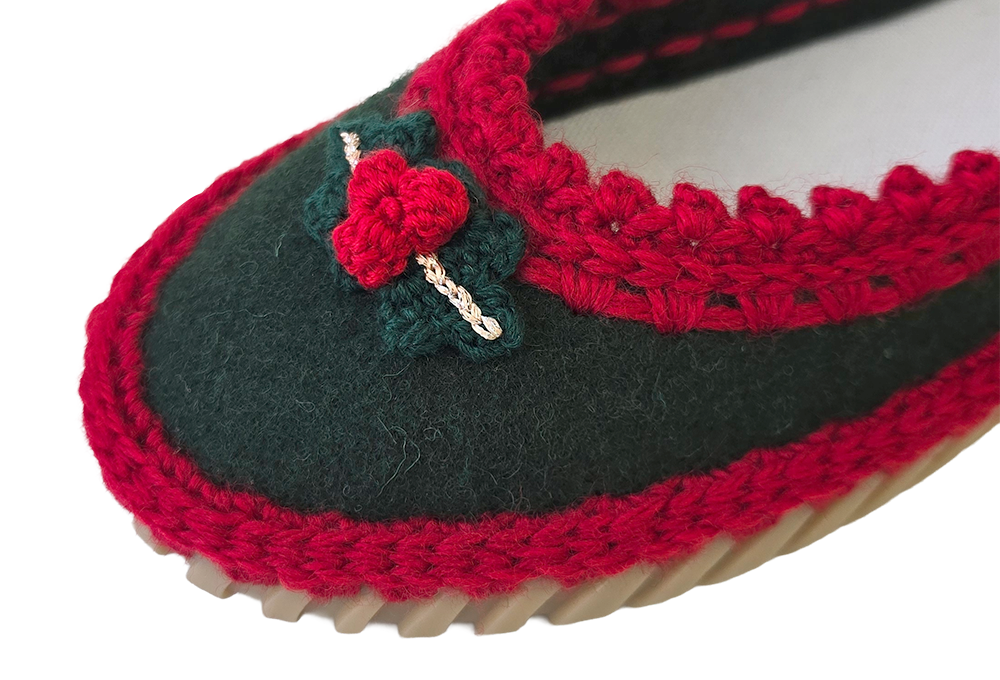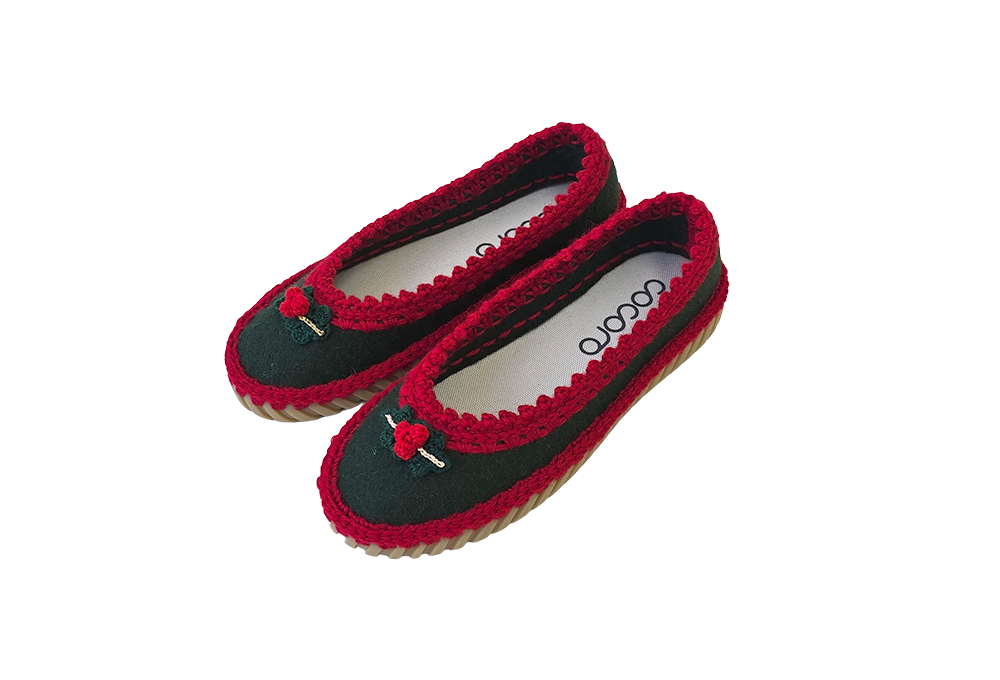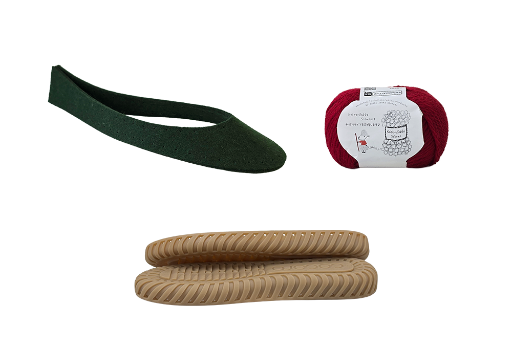 フェルトアッパーと編み付けアウトソールを使用しました。
