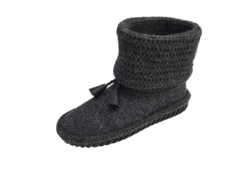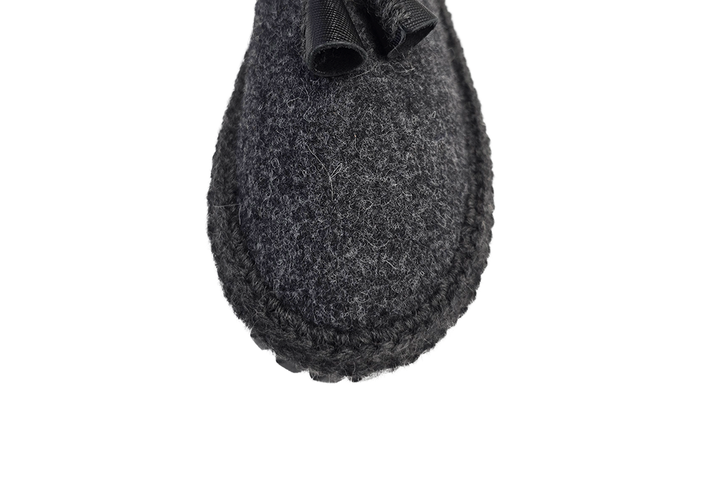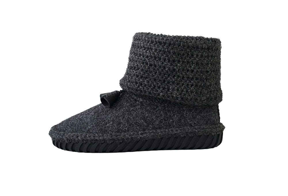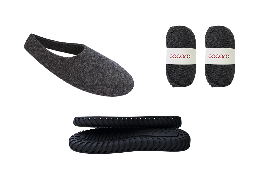 フェルトアッパーと編み付けアウトソールを使用しました。