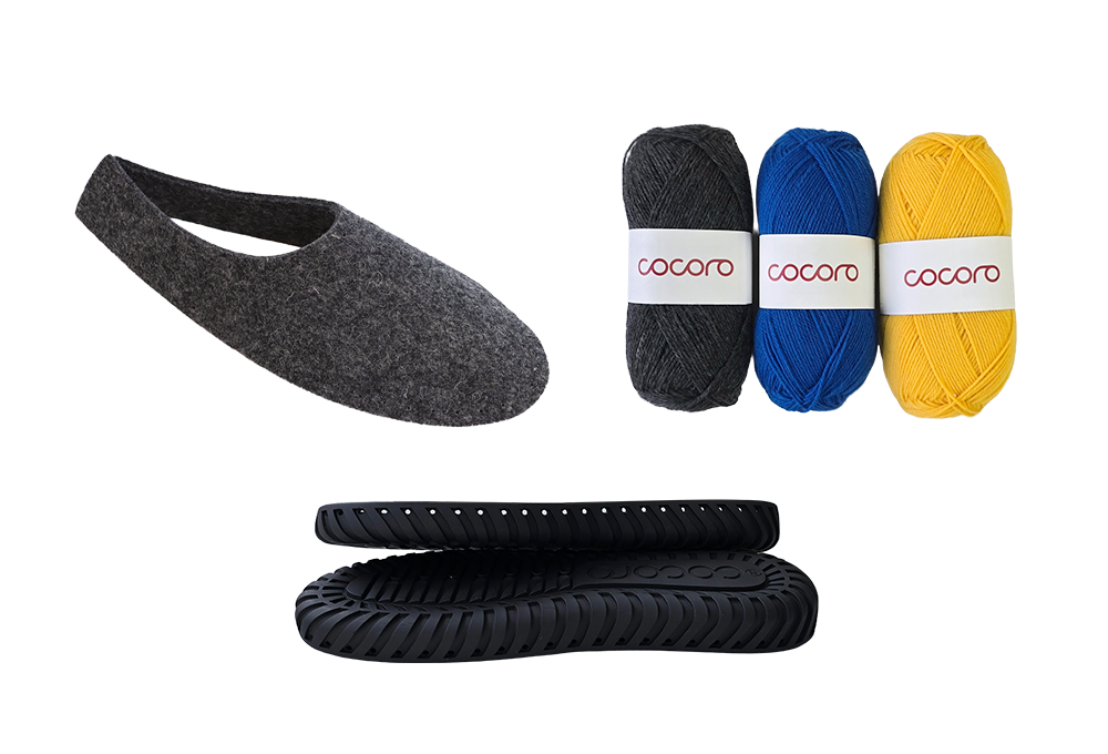 フェルトアッパーと編み付けアウトソール(オリジナル)を使用しました。