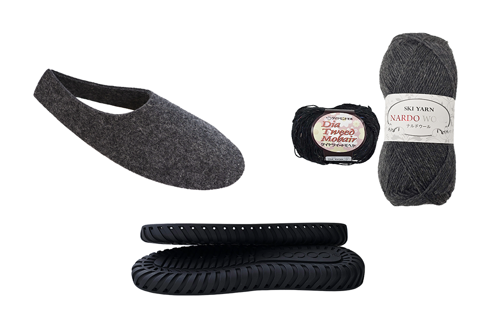 フェルトアッパーと編み付けアウトソール(オリジナル)を使用しました。