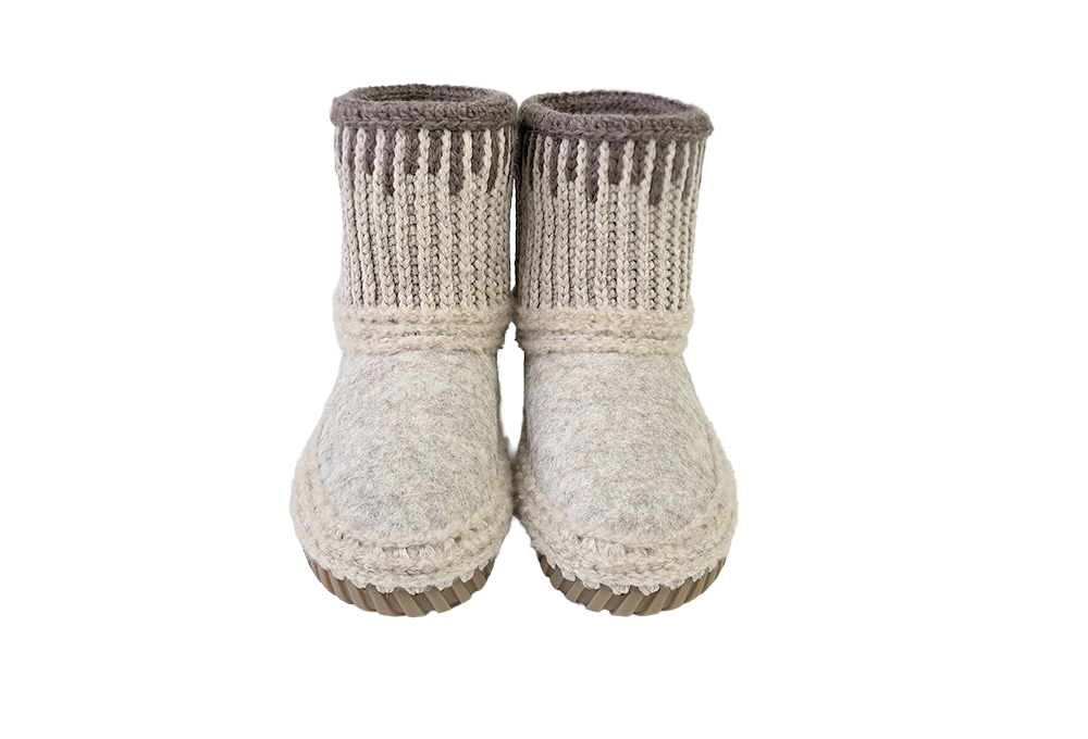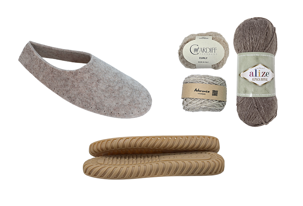 フェルトアッパーと編み付けアウトソール(オリジナル)を使用しました。